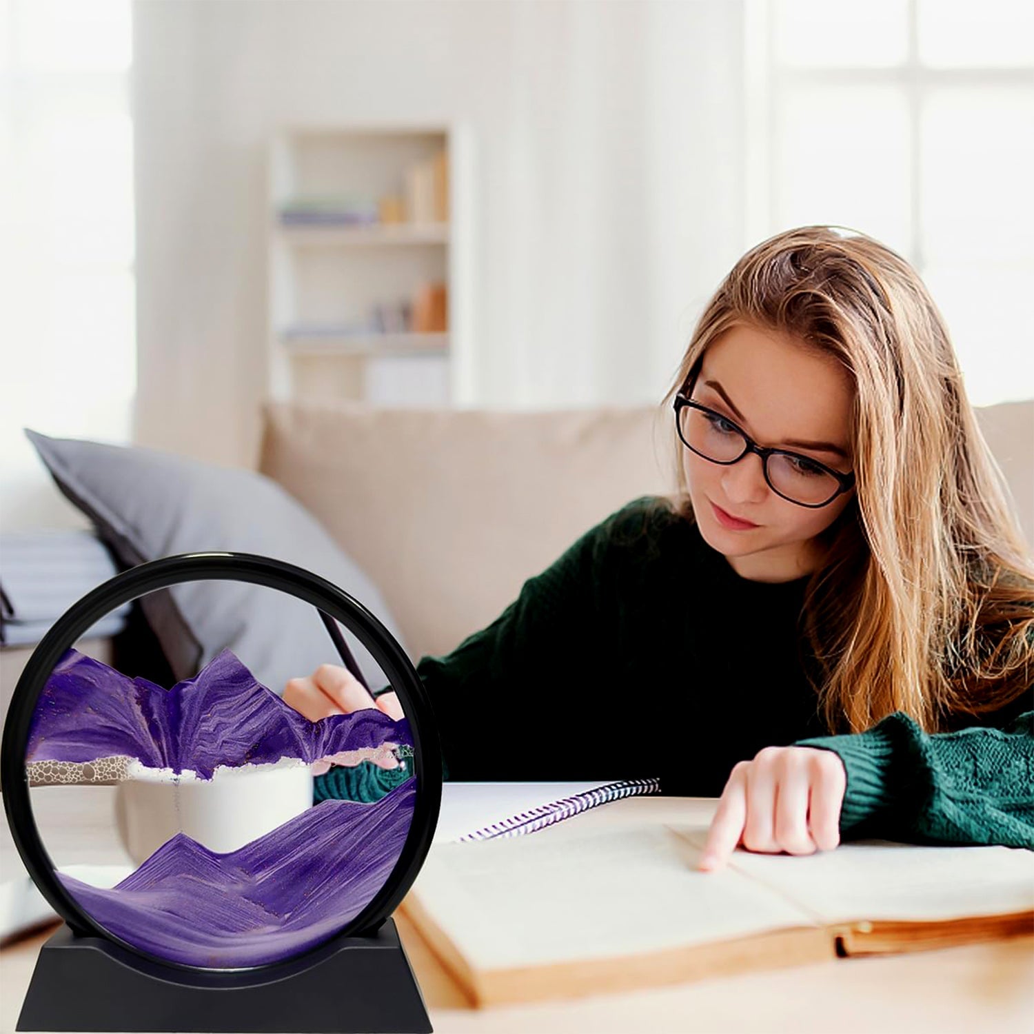 - Magnificent Dynamic Sands cape-The dynamic sand picture can be rotated freely in 360, every time you turn it, the sand starts to move and slowly form deserts, oceans, mountains. You will be happy to enjoy the falling sand and the different landscape scenes, which will make you feel very relaxed and calm.