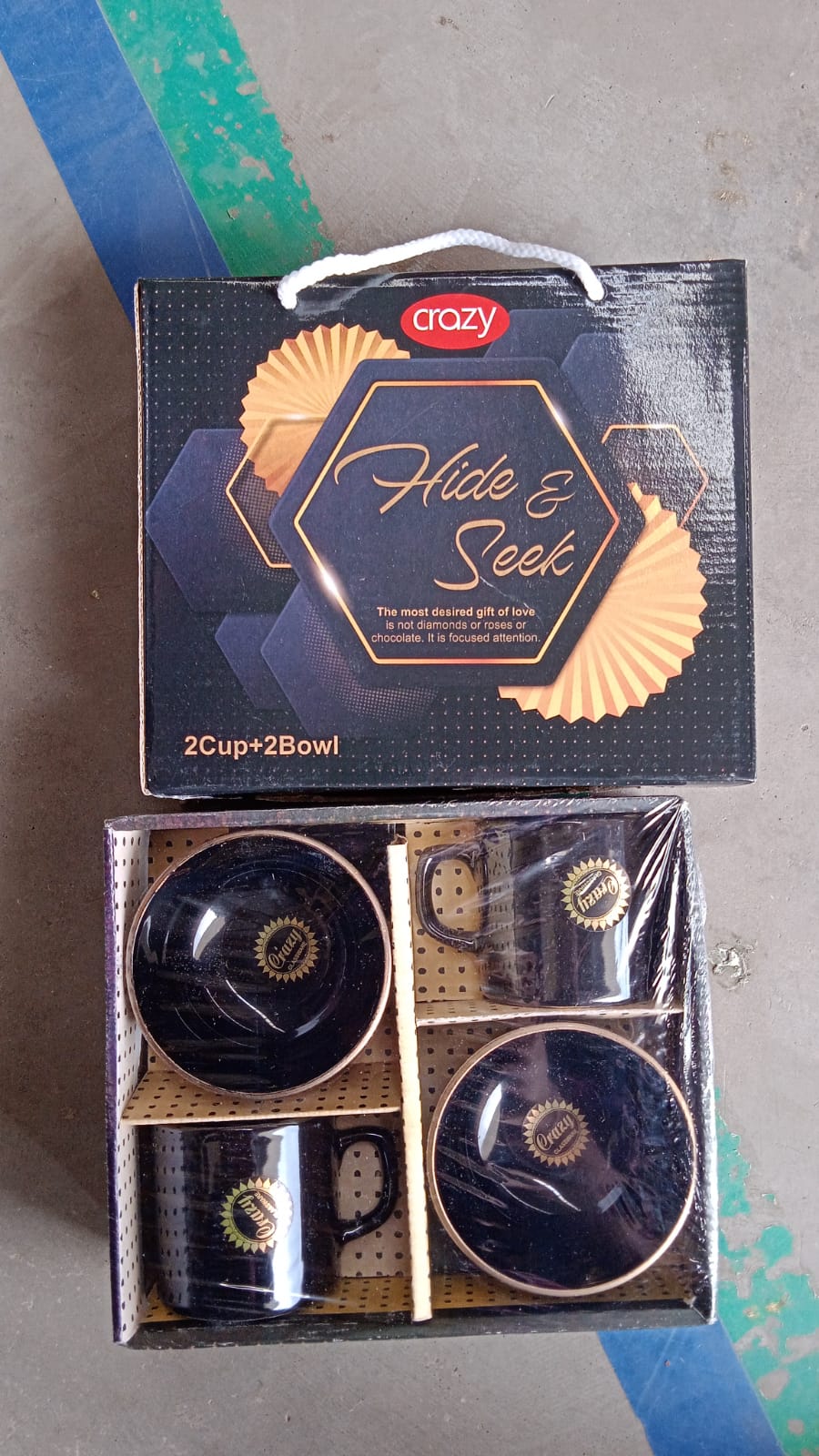 Description :-2 pcs Ceramic cup & 2 pc Ceramic bowl, 4-piece set of bowls and cups. Made from durable ceramic, these stunning pieces are the perfect addition to your collection. Serve up your favorite snacks and drinks in style and impress your guests with their unique design.