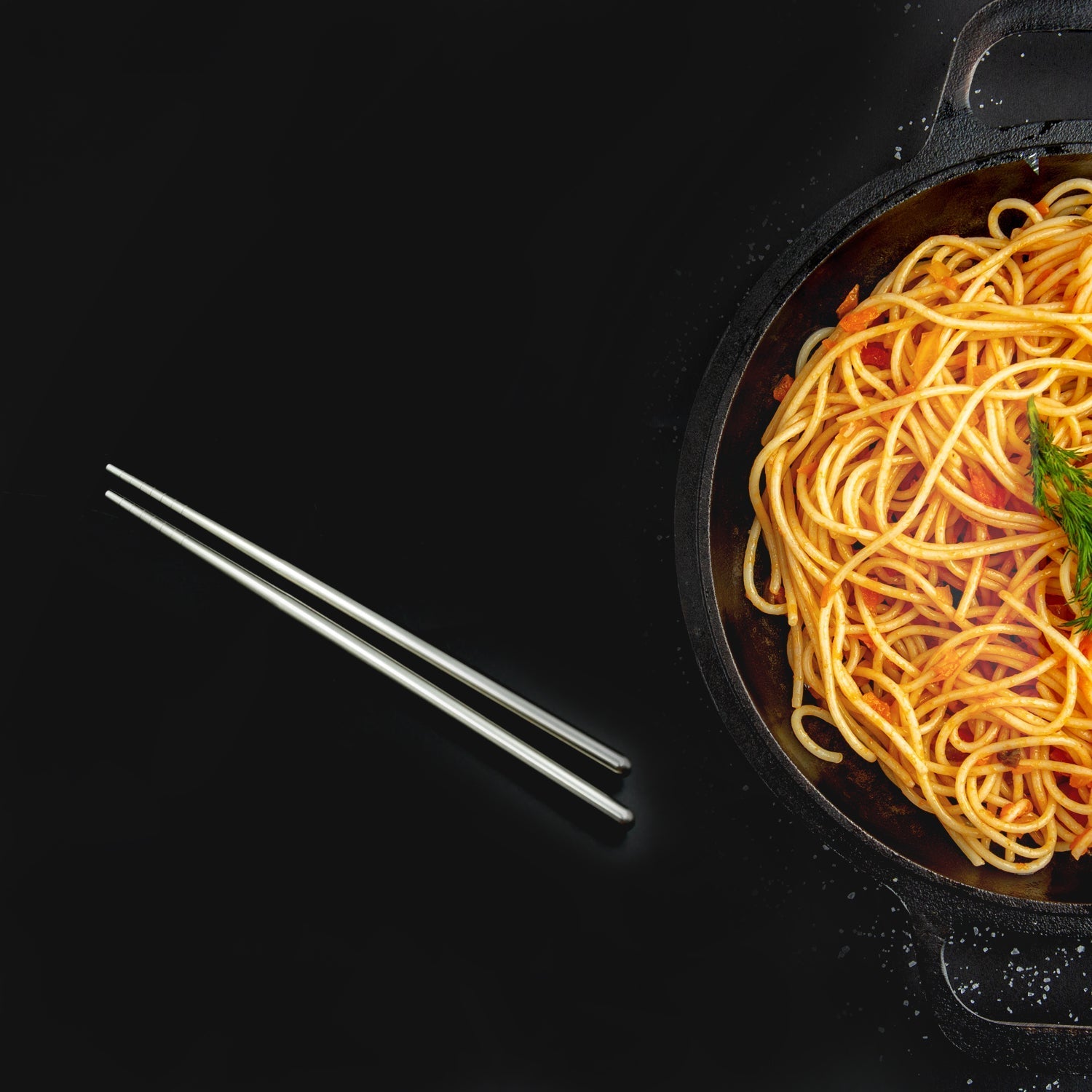 - There are a pair of chopsticks, a fork, and spoon, that' great to eat noodle, cake, rice, vegetable and different kinds of food. Different color design make your food more fun.