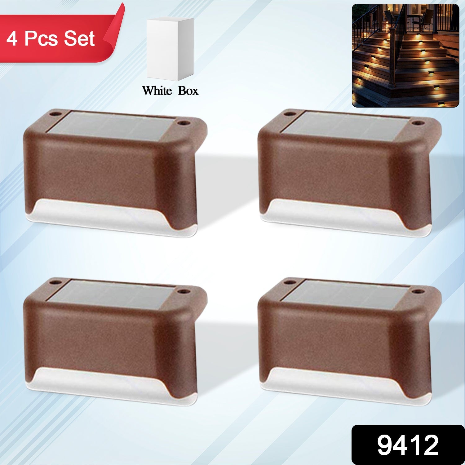 9412 Solar Decorative Lights, Waterproof Durable Garden Atmosphere Lights Stair Lights Railing Lights Step Steps Lights for Outdoor Patio Courtyard Stair Step Fence Patio Stairs, Yard, Garden Pathway (4 Pc Set)