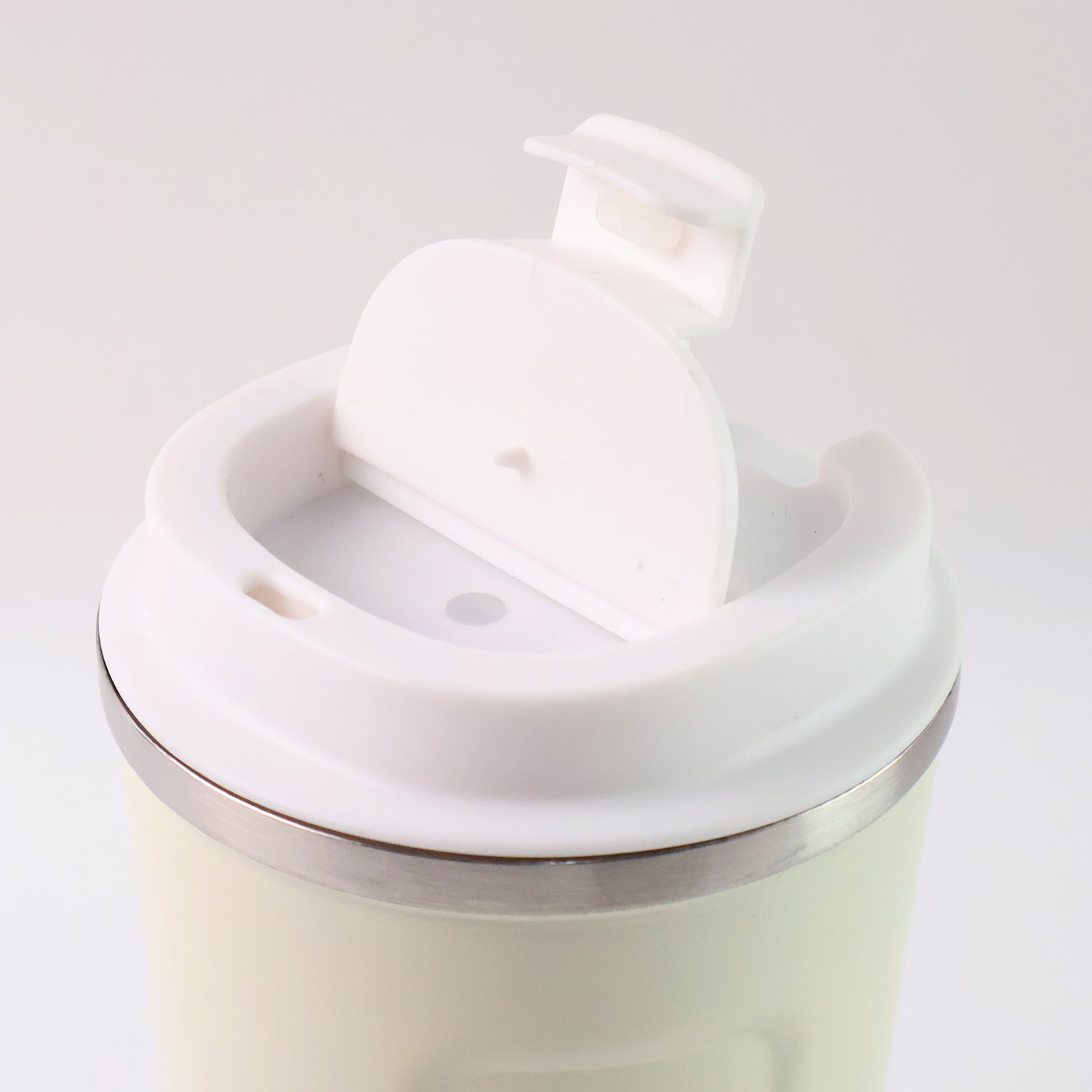 Keep your beverages at the ideal temperature while on the go with this 450 ML Thermo Travel Mug, crafted with a double-wall stainless steel interior and an elegant matte off-white exterior finish. The cup is designed to retain heat or cold for extended periods, ensuring your coffee stays hot or your iced drink remains chilled.